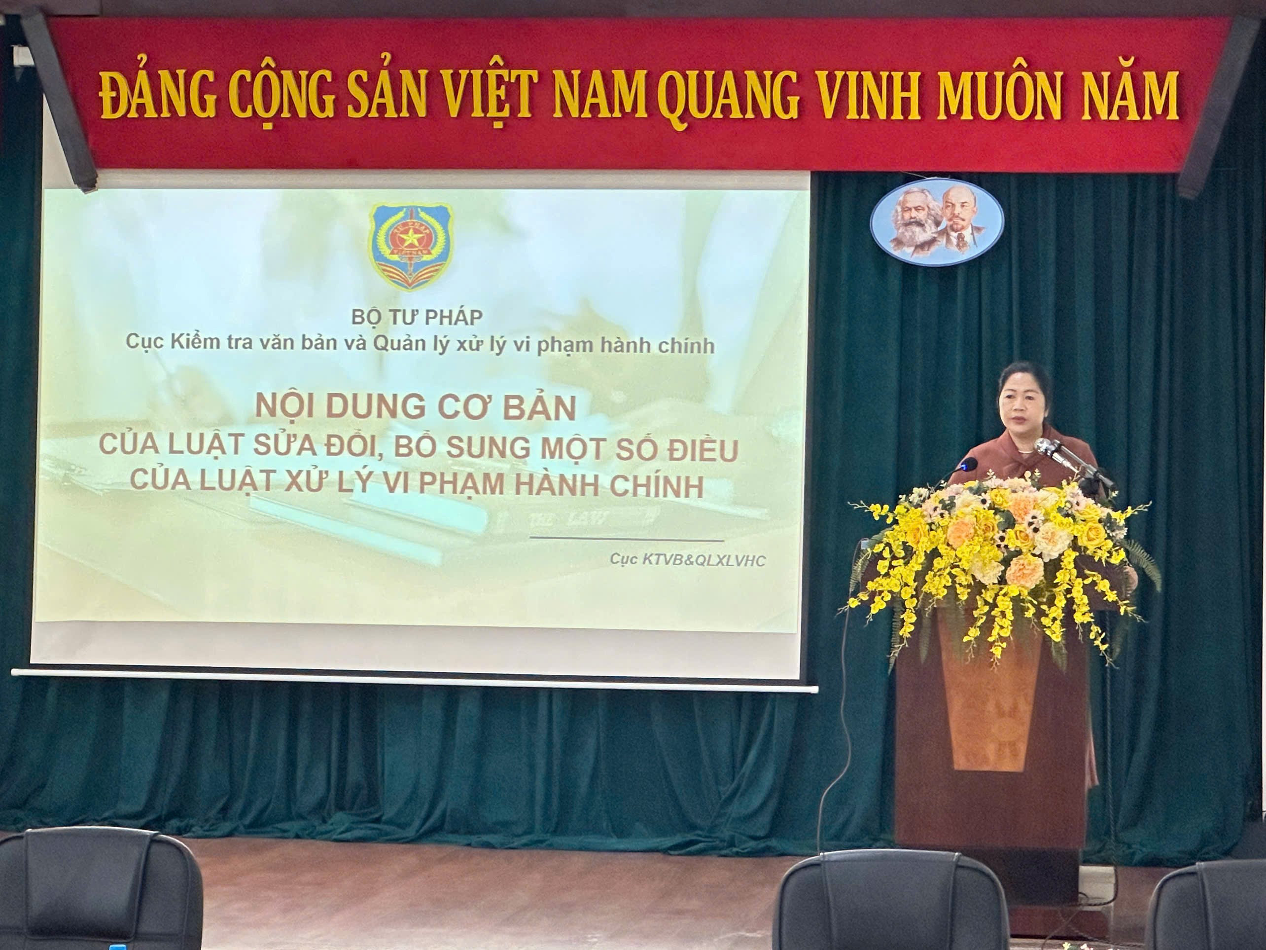 Hội nghị đã cập nhật cho công chức những điểm mới của Luật Xử lý vi phạm hành chính được sửa đổi, bổ sung năm 2025; Nghị định số 68/2025/NĐ-CP ngày 18 tháng 3 năm 2025 sửa đổi, bổ sung một số điều của Nghị định số 118/2021/NĐ-CP ngày 23 tháng 12 năm 2021 của Chính phủ quy định chi tiết một số điều và biện pháp thi hành Luât Xử lý vi phạm hành chính; những điểm mới của Nghị định số 24/2025/NĐ-CP ngày 21 tháng 02 năm 2025 của Chính phủ sửa đổi, bổ sung một số điều của Nghị định số 98/2020/NĐ-CP ngày 26 tháng 8 năm 2020 của Chính phủ quy định xử phạt vi phạm hành chính trong hoạt động thương mại, sản xuất, buôn bán hàng giả, hàng cấm và bảo vệ quyền lợi người tiêu dùng.