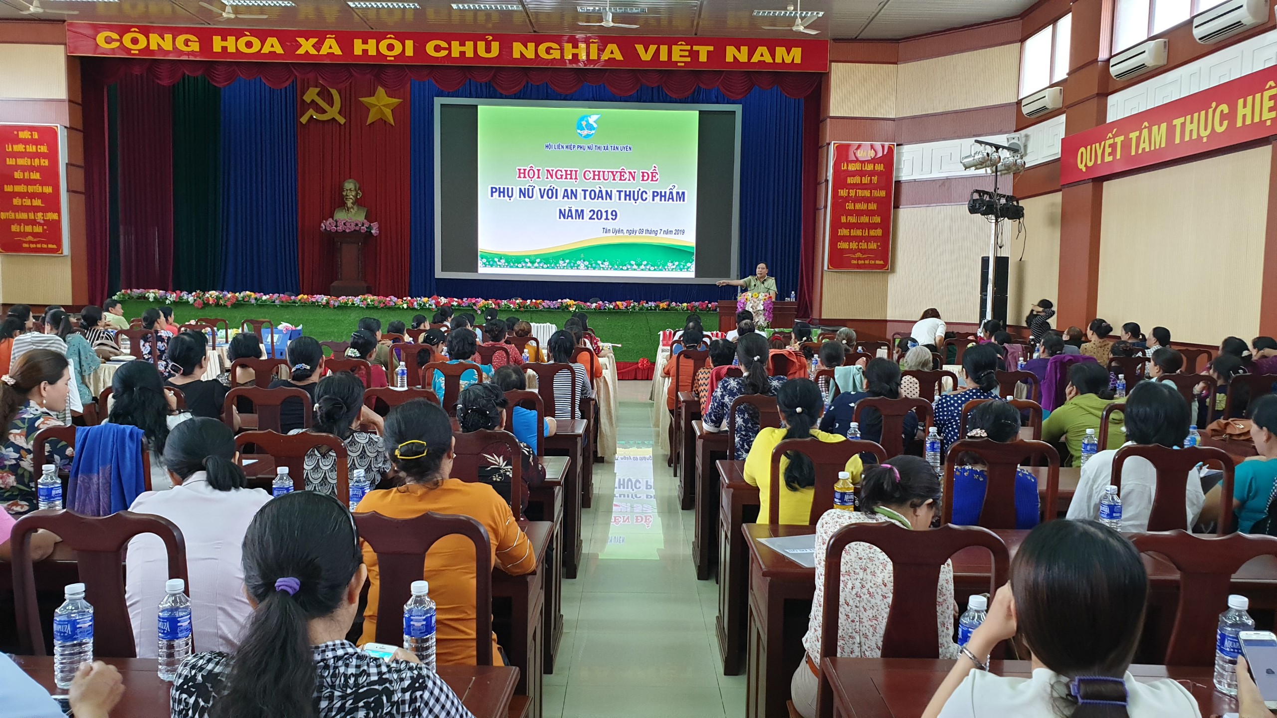 Ngày 09/7/2019, Cục Quản lý thị trường tỉnh Bình Dương phối hợp với Hội liên hiệp phụ nữ thị xã Tân Uyên tổ chức Hội nghị tuyên truyền pháp luật “Phụ nữ với chuyên đề an toàn thực phẩm năm 2019” cho 200 đại biểu là chủ tịch, phó chủ tịch Hội phụ nữ xã, phường; chi hội trưởng Hội bảo vệ quyền lợi người tiêu dùng xã, phường, các tiểu thương chợ Phú Chánh, Uyên Hưng, Hội Nghĩa, Khánh Bình trên địa bàn thị xã Tân Uyên.