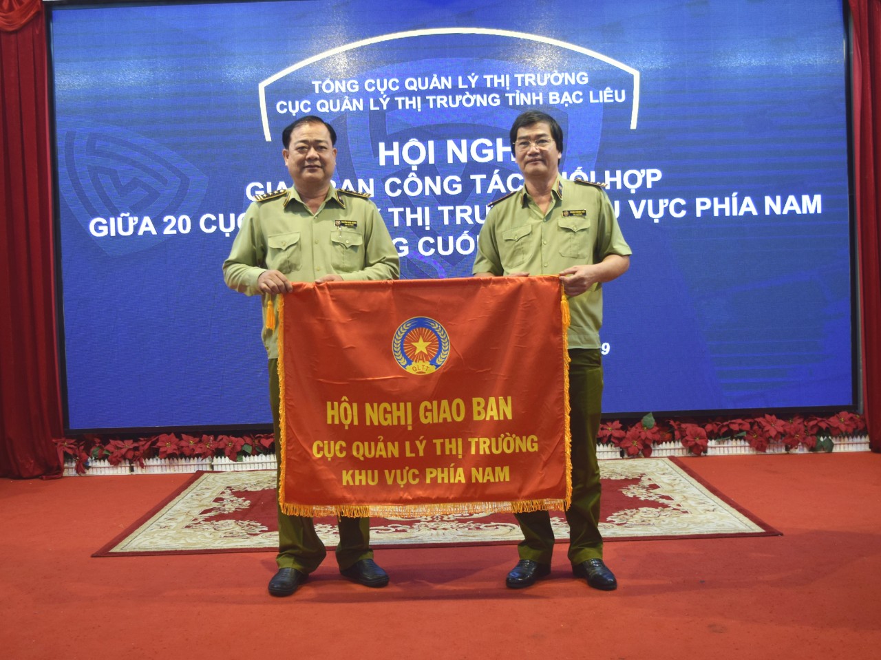 Sáng 06/12/2019, tại nhà khách Hùng Vương, Cục QLTT tỉnh Bạc Liêu đã luân phiên đăng cai tổ chức Hội nghị giao ban công tác phối hợp giữa 20 Cục Quản lý thị trường (QLTT) các tỉnh, thành phố khu vực phía Nam, để đánh giá kết quả công tác 6 tháng cuối năm 2019 và đề ra phương hướng, nhiệm vụ 6 tháng đầu năm 2020. Ông Trần Hữu Linh, Tổng Cục trưởng Cục QLTT, Bộ Công thương, cùng đại diện Cục QLTT 20 tỉnh, thành phố khu vực phía Nam đã tham dự hội nghị.