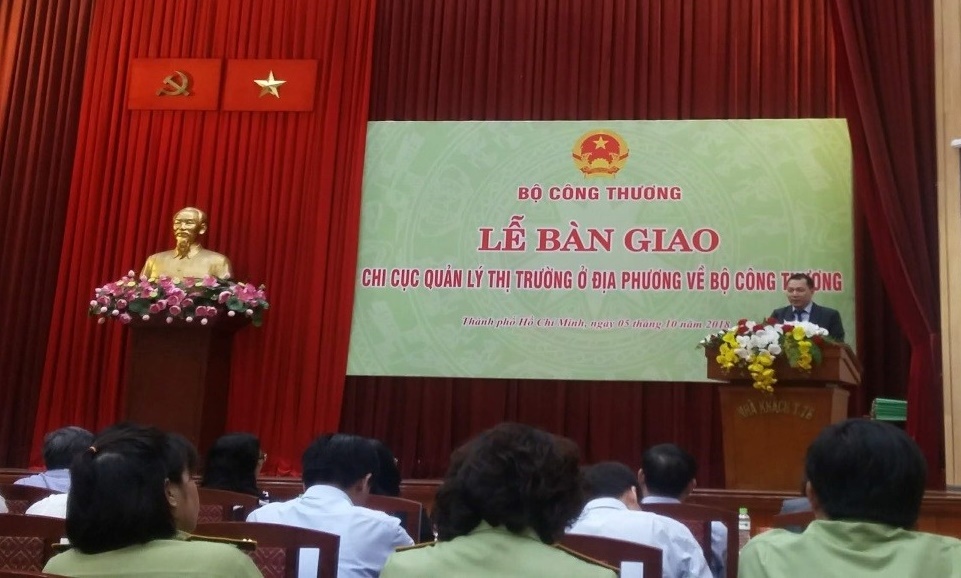 Sáng ngày 05 tháng 10 năm 2018, tại Hội trường A, Nhà khách T78, số 145 Lý Chính Thắng, phường 7, Quận 3, Thành phố Hồ Chí Minh, đã diễn ra buổi lễ bàn giao Chi cục Quản lý thị trường ở địa phương về Bộ Công Thương.