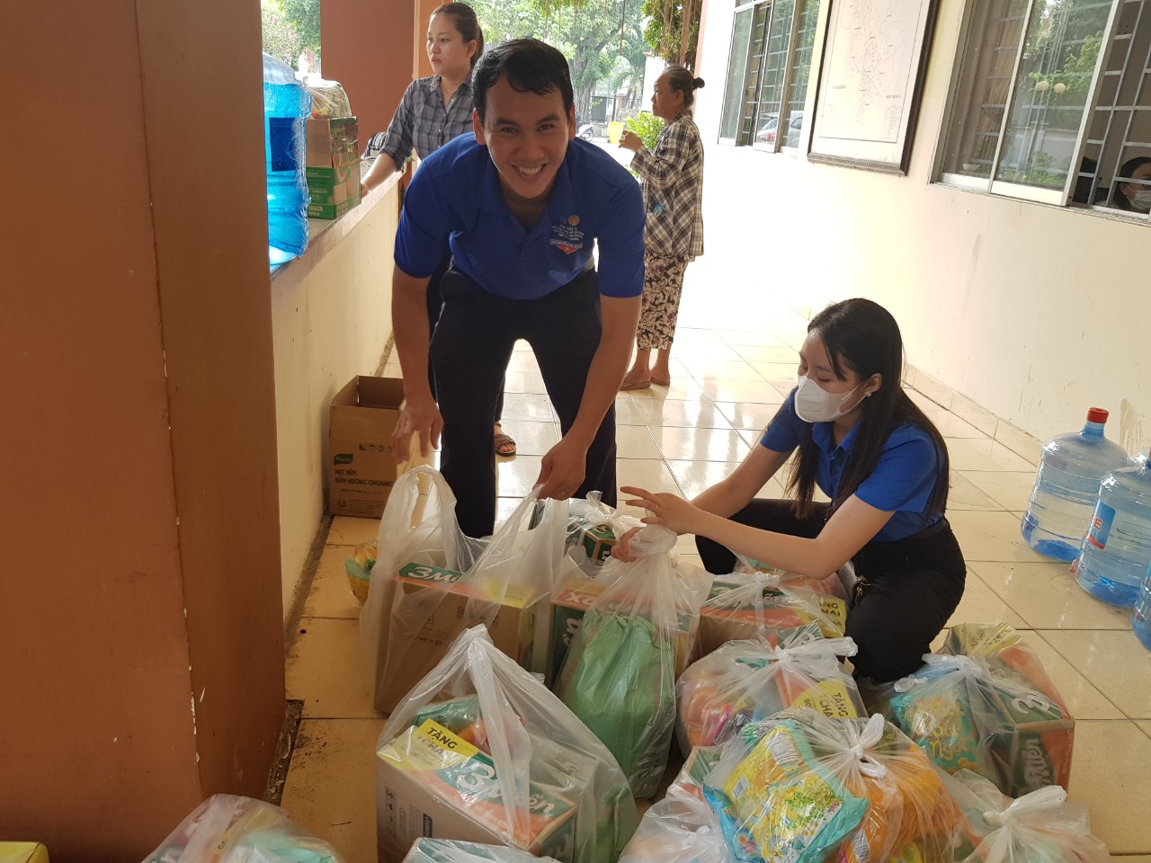 Đoàn viên chuẩn bị các phần quà cho người dân