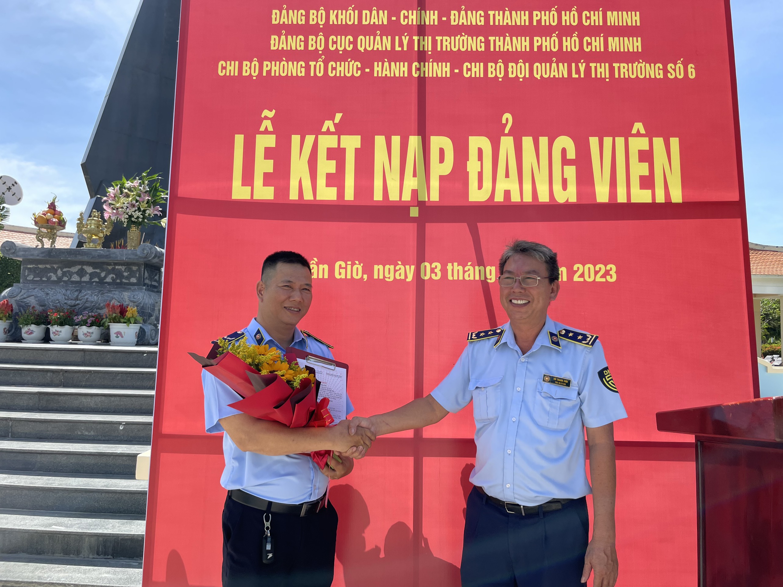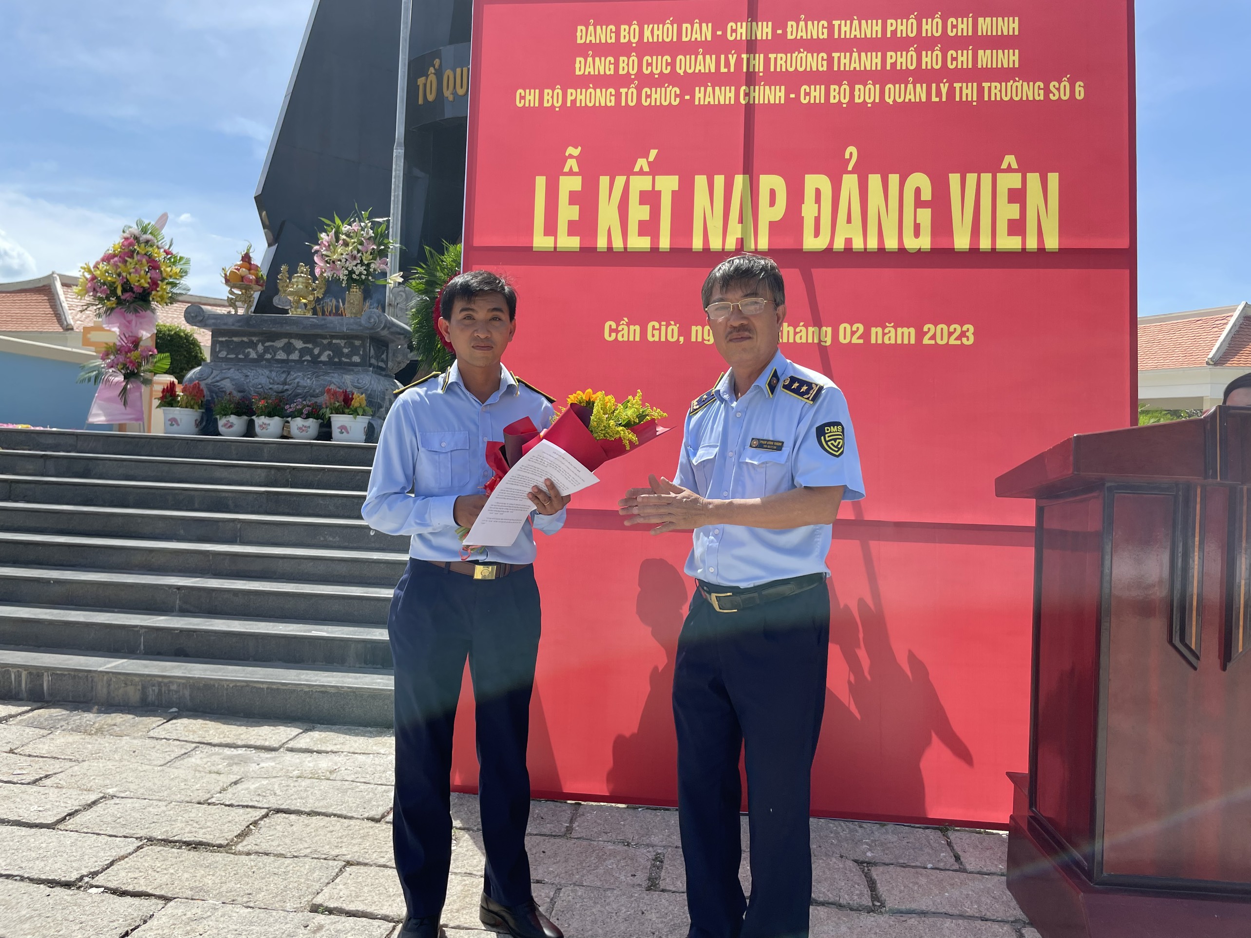 Được sự đồng ý của Đảng ủy Cục Quản lý thị trường Thành phố Hồ Chí Minh, sáng ngày 03/2/2023, tại Nghĩa trang liệt sĩ Rừng Sác - Cần Giờ, chi bộ Phòng Tổ chức – Hành chính và chi bộ Đội Quản lý thị trường số 6 thuộc Đảng bộ Cục Quản lý thị trường Thành phố Hồ Chí Minh trang trọng tổ chức Lễ kết nạp đảng viên mới.