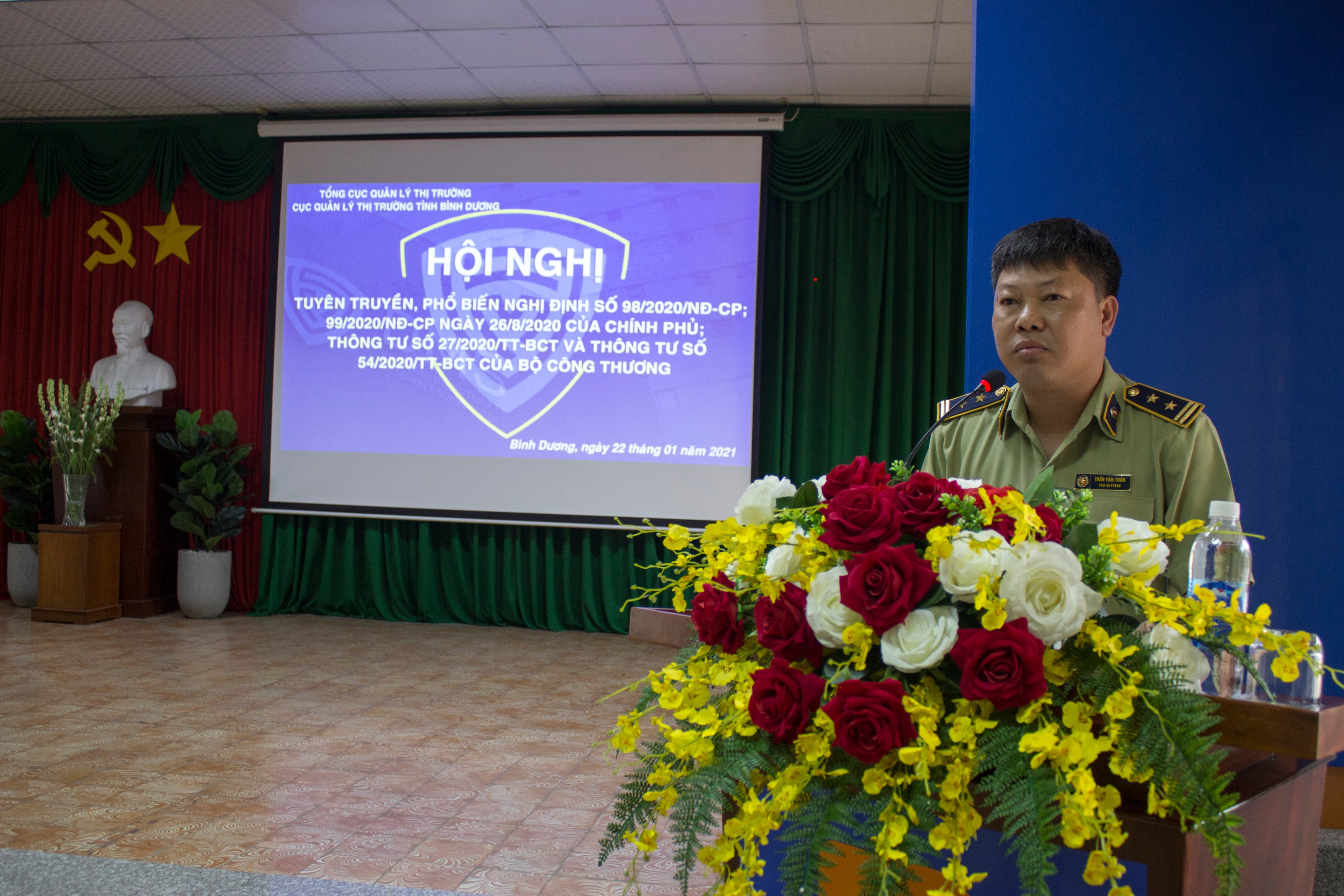 Thực hiện Quy chế phối hợp giữa Cục Quản lý thị trường Bình Dương và Công ty Xăng dầu Sông Bé - TNHH MTV và Kế hoạch số 1198/KH-QLTT ngày 04/11/2020 về triển khai tuyên truyền, phổ biến pháp luật năm 2020. Sáng ngày 22/01/2020, tại hội trường Công ty Xăng dầu Sông Bé – TNHH MTV địa chỉ: Số 8 CMT8, P.Phú Thọ, Tp.Thủ Dầu Một, Bình Dương, Cục Quản lý thị trường tỉnh Bình Dương (QLTT) phối hợp Công ty Xăng dầu Sông Bé - TNHH MTV (Petrolimex Sông Bé) đã tổ chức Hội nghị Tuyên truyền, phổ biến pháp luật.