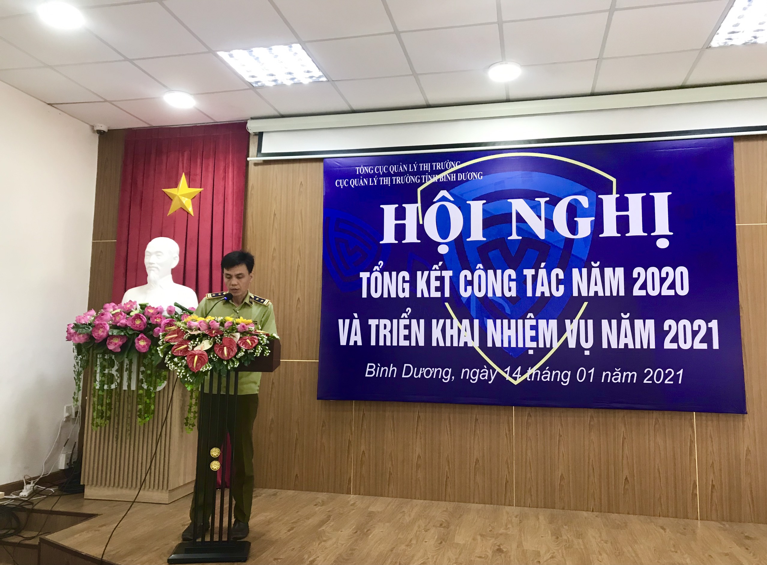 Ngày 14 tháng 01 năm 2021, Cục Quản lý thị trường tỉnh Bình Dương đã tổ chức Hội nghị tổng kết công tác năm 2020 và triển khai nhiệm vụ năm 2021.