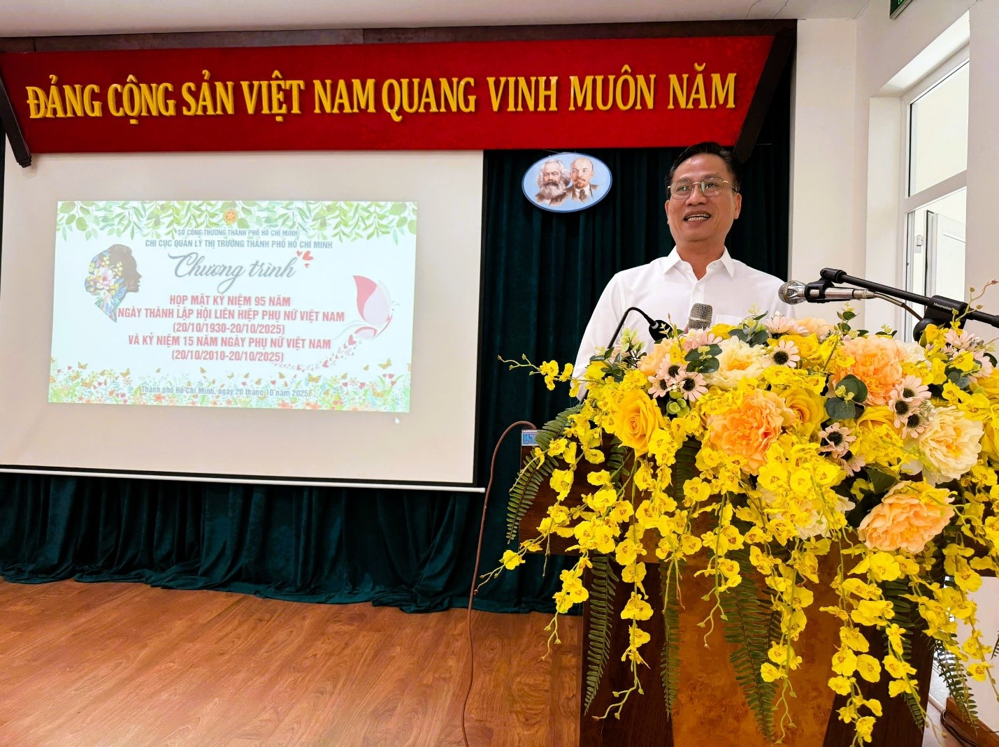 Trong không khí hân hoan, tươi vui của ngày kỷ niệm 95 năm ngày thành lập Hội Liên hiệp Phụ nữ Việt Nam (20/10/1930 – 20/10/2025) và 15 năm ngày Phụ nữ Việt Nam (20/10/2010 – 20/10/2025) – sáng ngày 20 tháng 10 năm 2025, Chi cục Quản lý thị trường Thành phố Hồ Chí Minh đã tổ chức buổi họp mặt kỷ niệm với sự tham dự của các công chức, người lao động của Chi cục nhằm tôn vinh vai trò, đóng góp và giá trị của người phụ nữ Việt Nam nói chung, nữ công chức, người lao động trong lực lượng Quản lý thị trường Thành phố Hồ Chí Minh nói riêng.