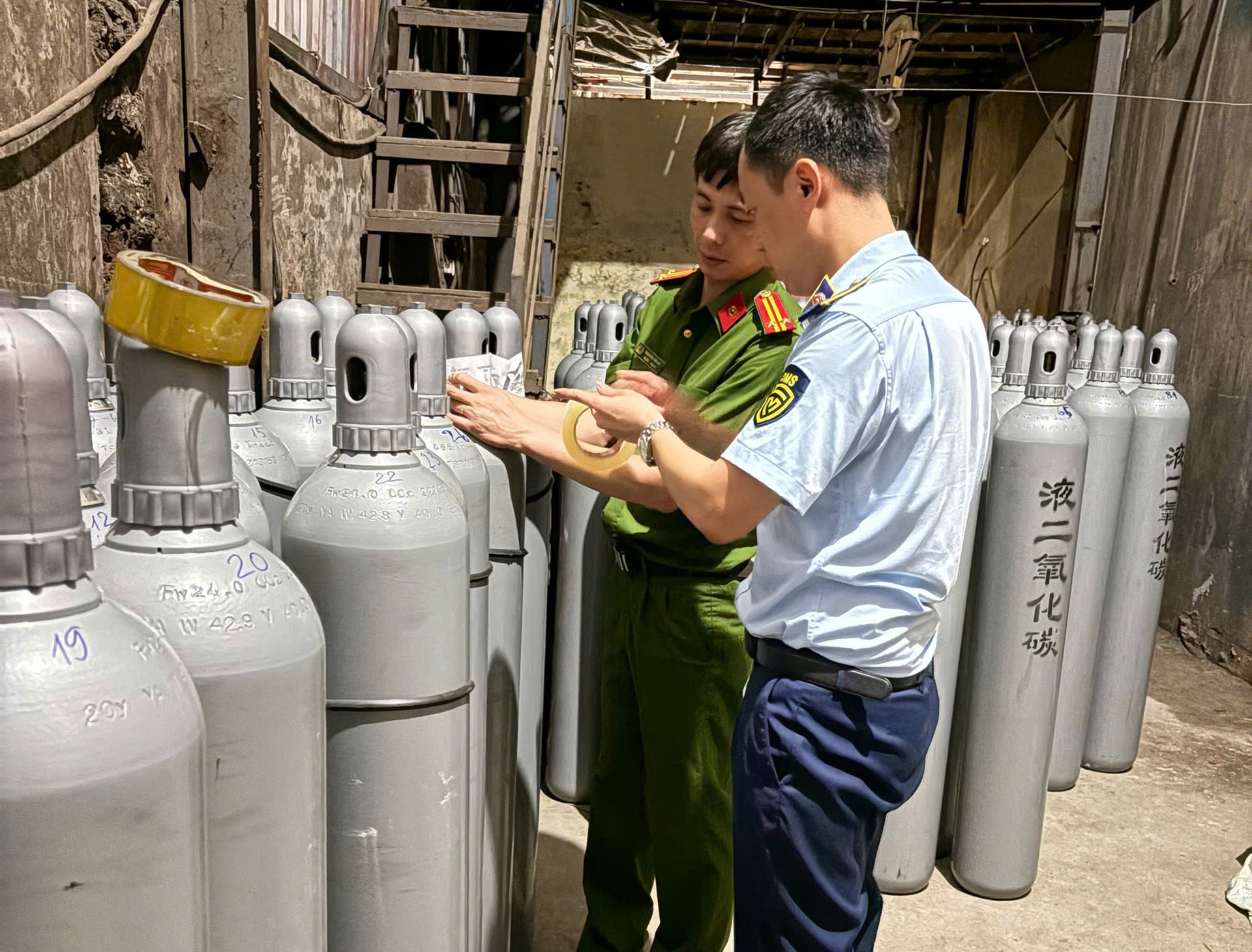 Đội Quản lý thị trường (QLTT) số 3, Chi cục QLTT tỉnh Bắc Ninh vừa phối hợp với Phòng Cảnh sát kinh tế (PC03) - Công an tỉnh Bắc Ninh kiểm tra 02 đối tượng, tạm giữ hơn 3 tấn khí (nghi khí cười N2O) chứa trong 190 chai kim loại, trị giá hàng hóa vi phạm ước tính hơn 600 triệu đồng.