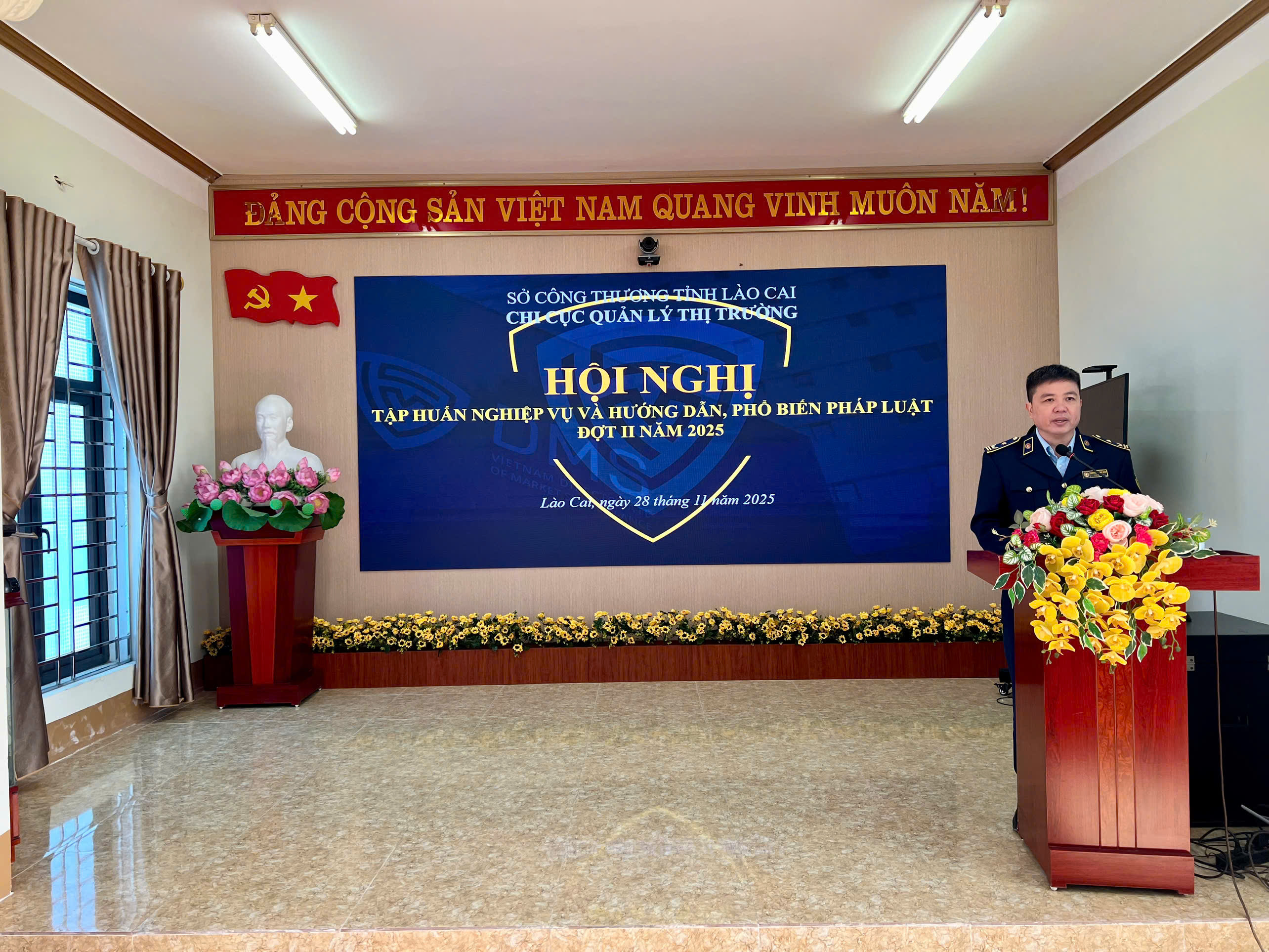 Thực hiện Kế hoạch số 370/KH-QLTT ngày 18 tháng 11 năm 2025 của Chi cục Quản lý thị trường tỉnh Lào Cai về tổ chức tập huấn nghiệp vụ và tuyên truyền phổ biến pháp luật đợt 2 năm 2025.