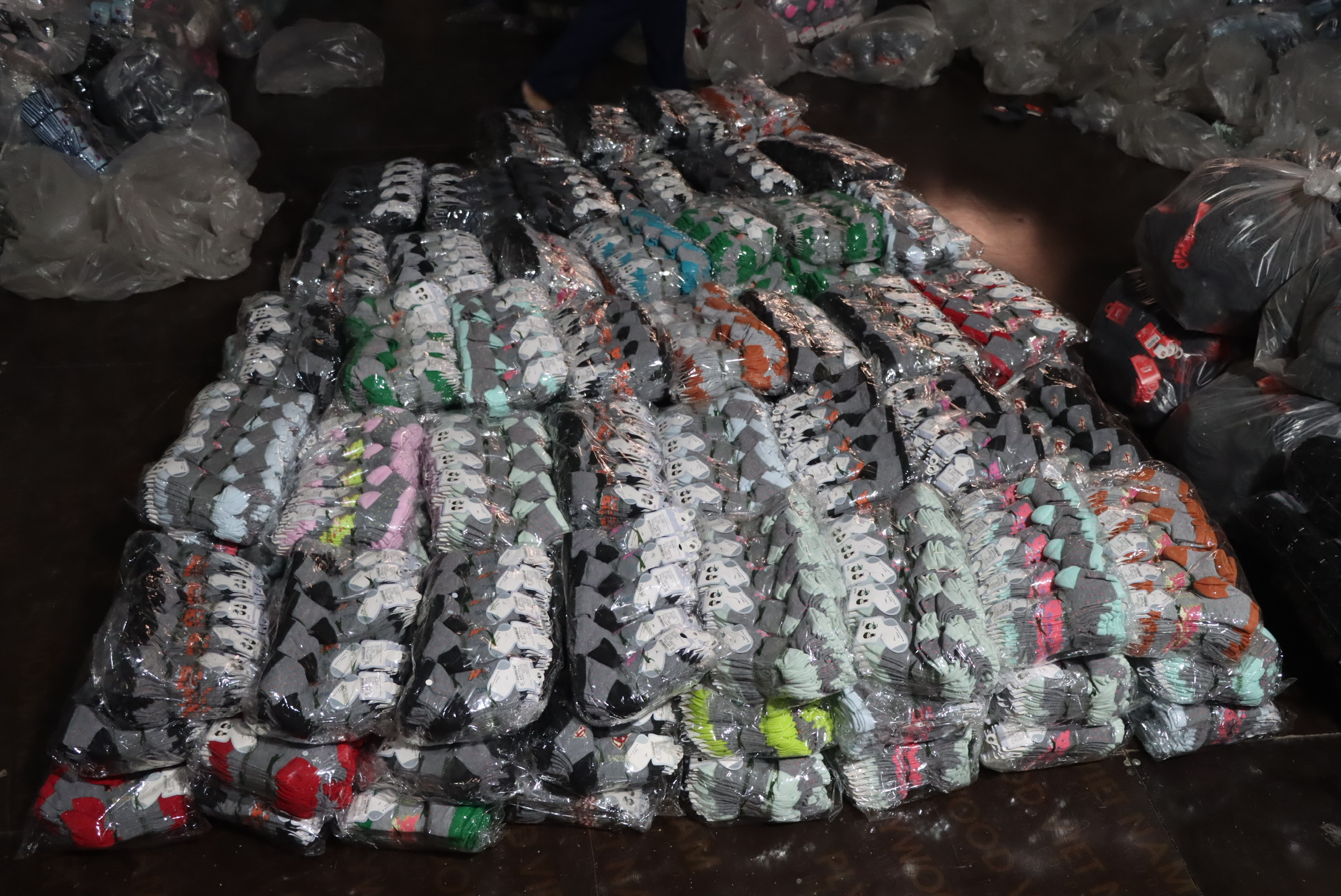 Tiến hành đối chiếu hóa đơn cơ sở cung cấp, Cục Quản lý và Phát triển thị trường trong nước tạm giữ một số lượng lớn nguyên liệu, nhãn mác, tem, cùng gần 10.000 đôi tất có dấu hiệu giả xuất xứ và nhãn hiệu và niêm phong toàn bộ các máy móc có dấu hiệu sản xuất hàng giả, để tiếp tục xác minh, nếu có dấu hiệu hình sự sẽ chuyển cho cơ quan công an để tiếp tục điều tra, xử lý đúng quy định của pháp luật.